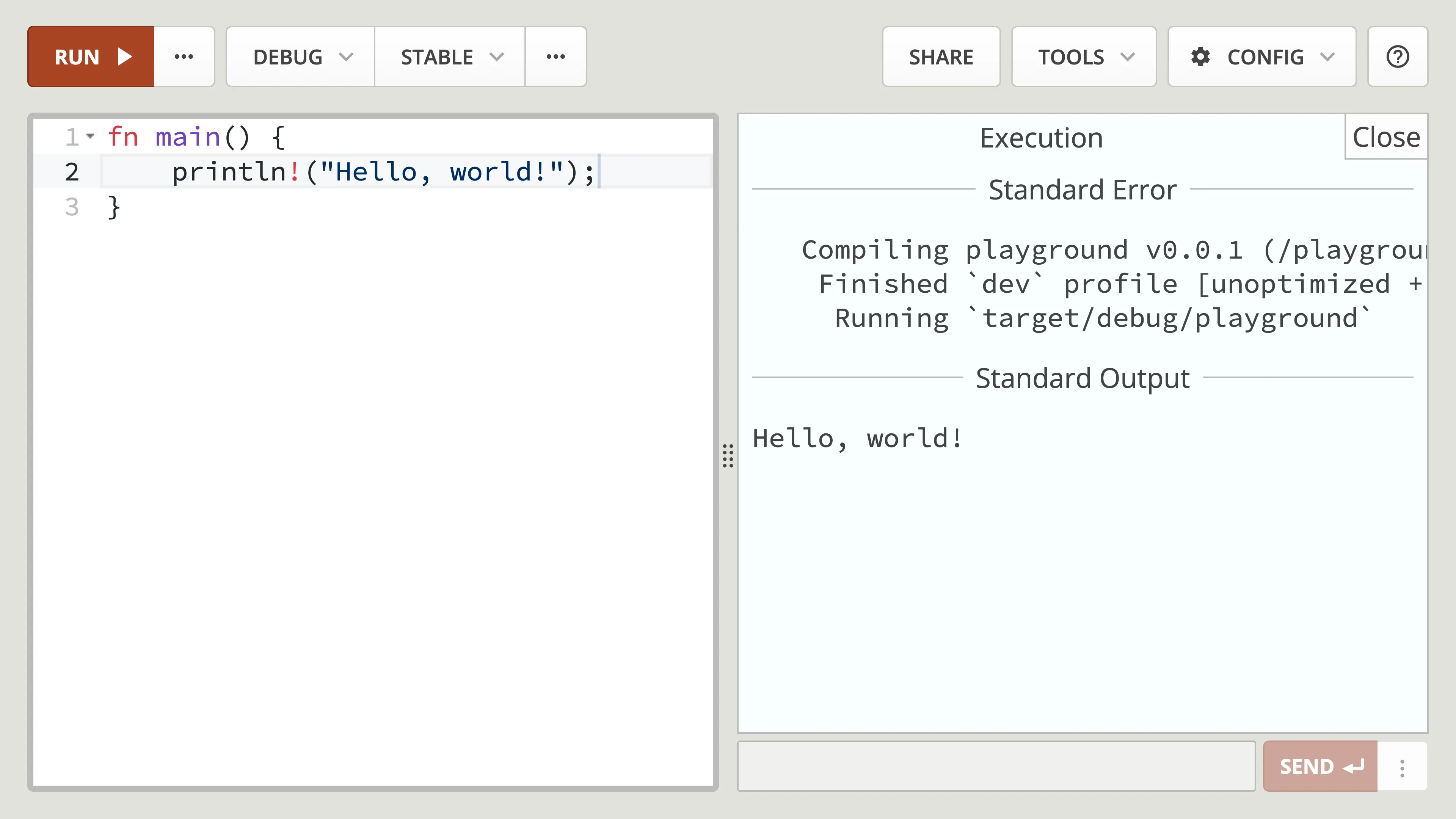 But first, if you don’t want to install Rust just yet, you can head over to the Rust Playground. This will let you write and run Rust in the browser with a few restrictions, such as a limited selection of 3rd party crates and limited resources.
