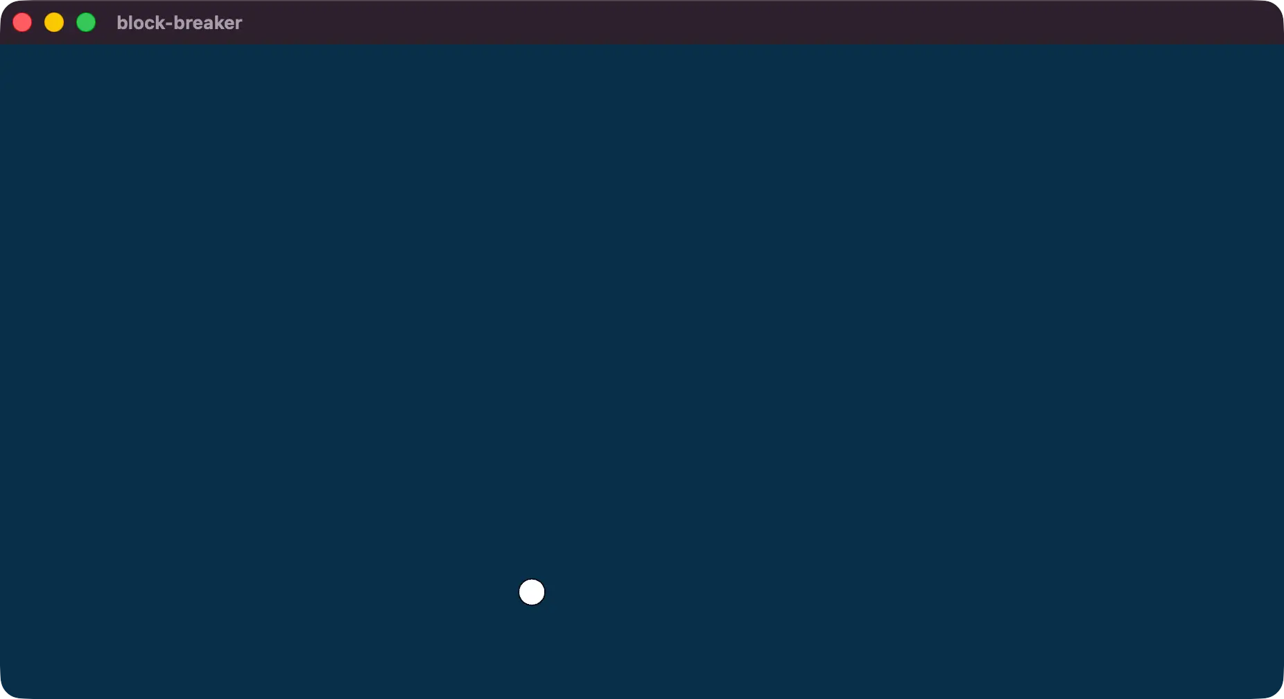 We then add that value to the ball’s Transform::translation. The movement is a Vec2 and the translation is a Vec3, so we extend our Vec2 with a 0 in the z axis, which adds nothing to the z value.