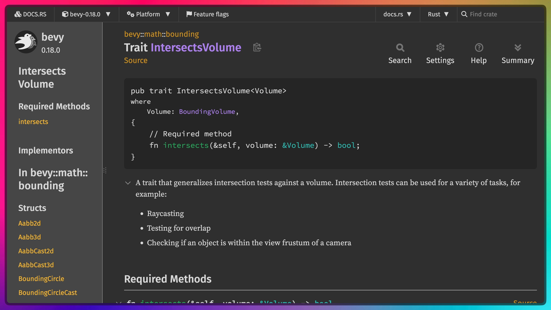 Aabb2d, BoundingCircle, IntersectsVolume,