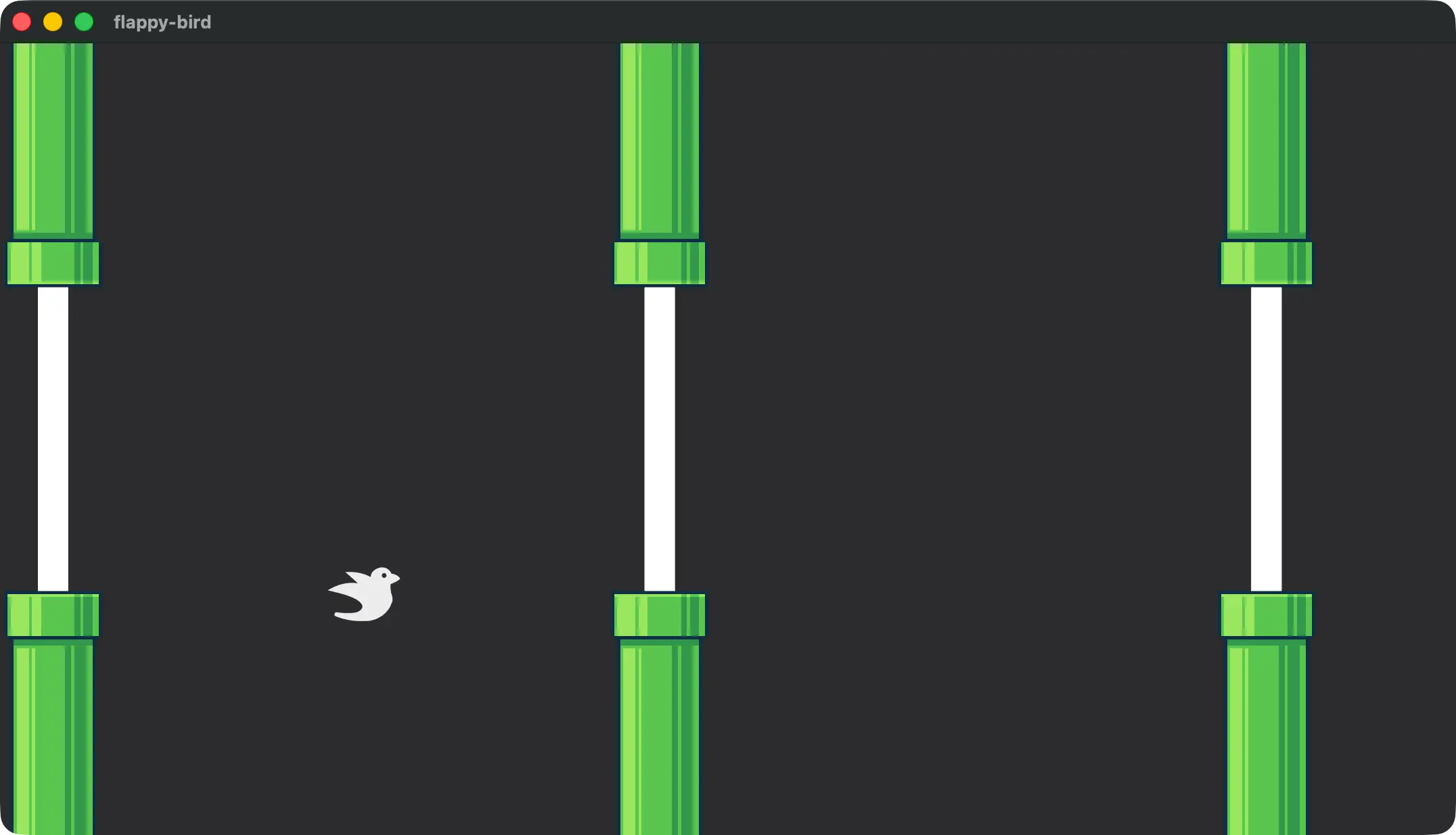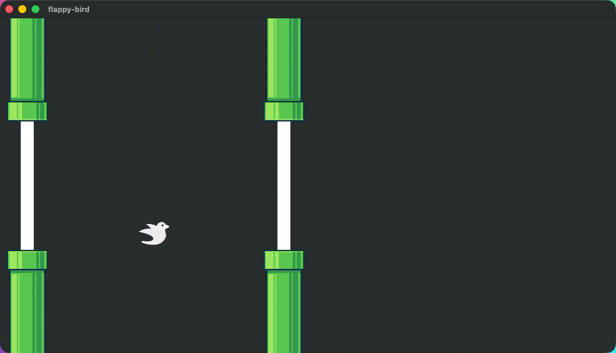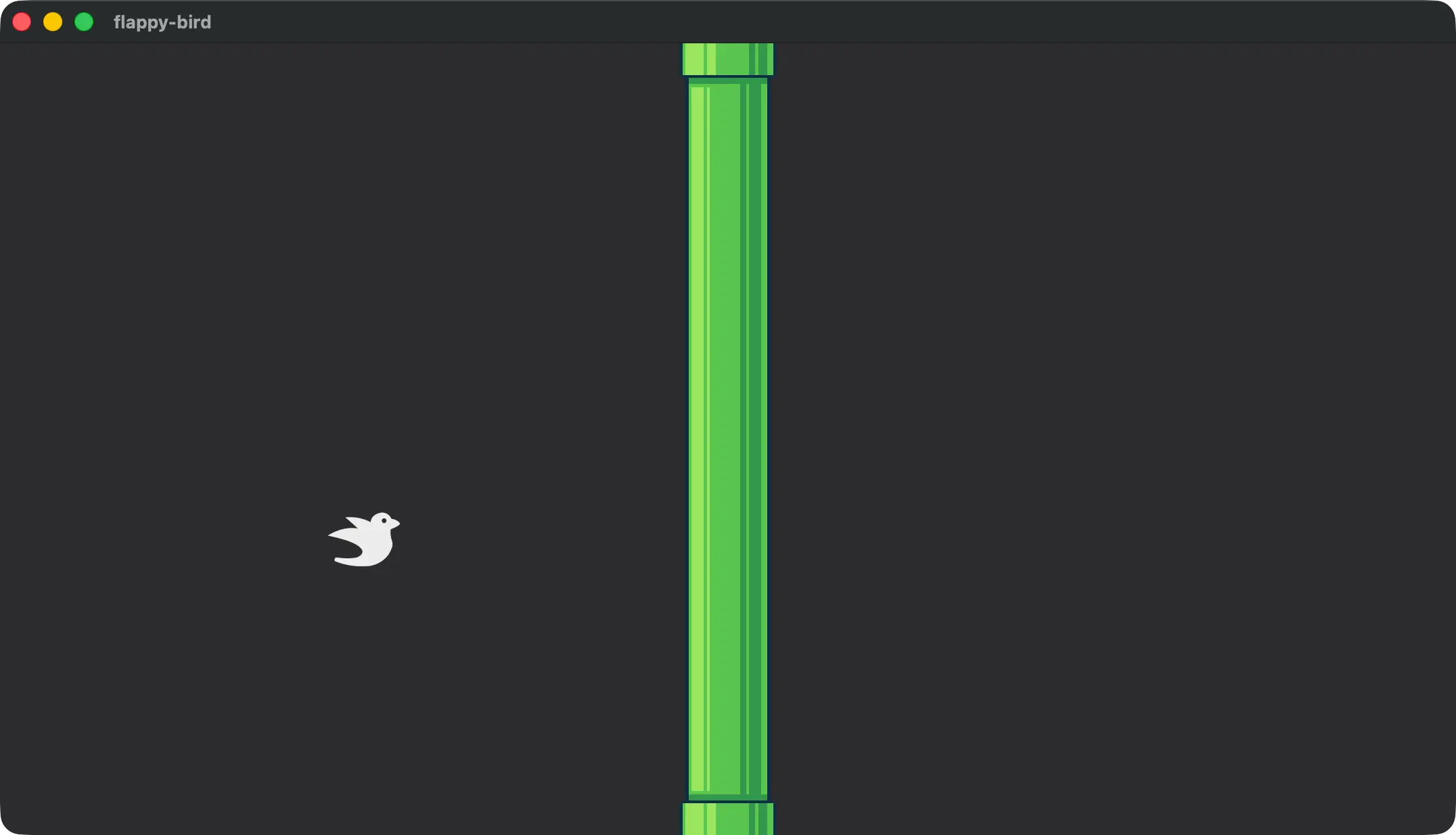 The height of the PIPE_SIZE is using the CANVAS_SIZE.y because this is an easy value which we will never exceed. All we’re really trying to do is make sure that the pipe sprite is always tall enough to fill the “rest” of the screen and there’s no strong reason to do it dynamically by adjusting the height.